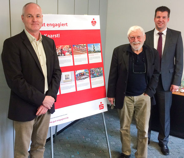 Guido Nix (rechts), Filialleiter der Sparkasse Kaarst-Büttgen, hat sich Zeit genommen. Wilhelm Schiefer (Mitte) und Markus Albiez (links) vom Vorstand des Kunstvereins haben die derzeitigen Kunstprojekte erläutert. Gerade für uns als Kunstverein ist die Sparkasse über die vielen gemeinsamen Jahre zu einem verlässlichen Partner geworden, der unsere Arbeit aktiv begleitet. Diese Form der regionalen Kunstförderung stärkt unseren ehrenamtlichen Einsatz nicht nur in finanzieller Hinsicht, sondern gibt Ansporn, auch weiterhin mit bürgerschaftlichem Engagement Kunstprojekte zu verwirklichen.