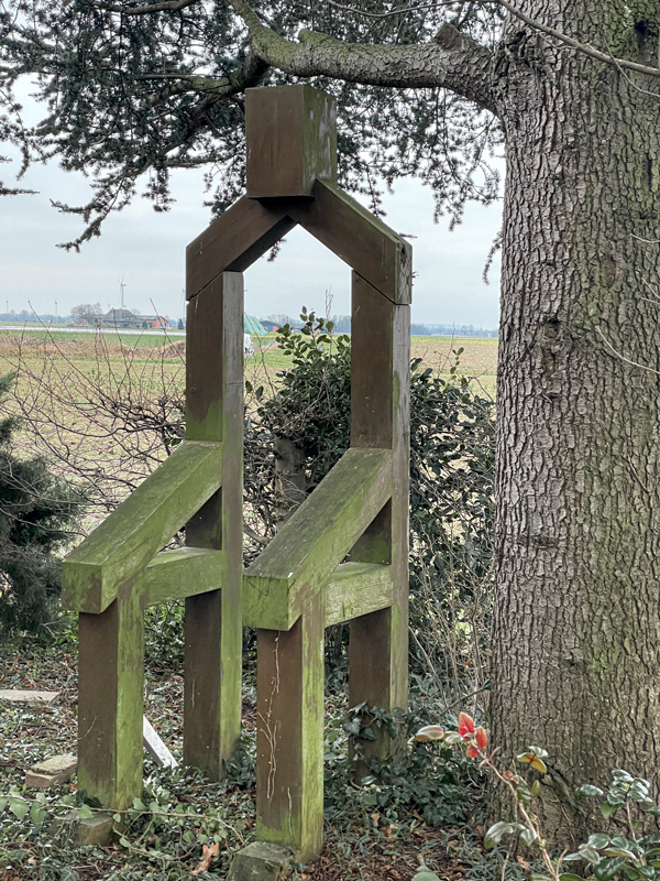 Zwei Trimm-dich-Geräte in der Blickachse der „Türhüter“. Ein weiteres Fitnessgerät direkt neben der „Waldhütte“, keine vier Meter davon entfernt. Gibt es keinen anderen Standort für Sportgeräte als in direkter visueller Nachbarschaft der angestammten Kunstwerke? Ja, der Vorster Wald ist nicht groß, aber groß genug, um einen separaten Platz für die Sportgeräte zu finden.