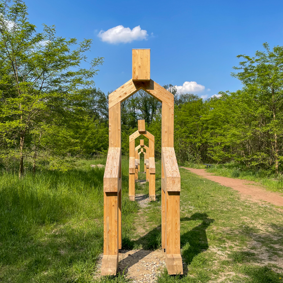 Endlich ist es soweit! Heute haben die Zimmerleute die vier Holzfiguren auf den Fundamenten montiert. Bald findet die Einweihung vor Ort im Vorster Wald statt. Einen Bericht dazu finden Sie bei rp-online: „Türhüter“ bieten neue Perspektiven