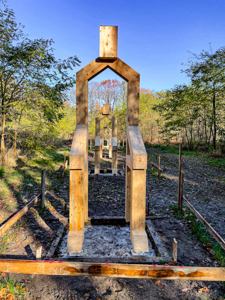 Endlich ist es soweit! Heute haben die Zimmerleute die vier Holzfiguren auf den Fundamenten montiert. Bald findet die Einweihung vor Ort im Vorster Wald statt. Einen Bericht dazu finden Sie bei rp-online: „Türhüter“ bieten neue Perspektiven