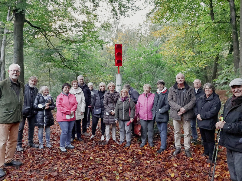 Mehr als 20 interessierte Gäste waren gekommen, als der Kunstverein Nordkanal eine Kunstexkursion durch den Vorster Wald anbot. Der Vereinsvorsitzende Markus Albiez freute sich über so viel Zuspruch und war, wie auch die Gäste, bestens gelaunt. Der gemeinsame Spaziergang begann an den „Brücken über den Nordkanal“ von Wilhelm Schiefer, führte dann zum „Ampelnistkasten“ von Till Hausmann und zu den „Türhütern“, ebenfalls von Wilhelm Schiefer.