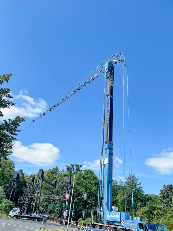 Schwerlastkran und Zimmerleute in den Startlöchern