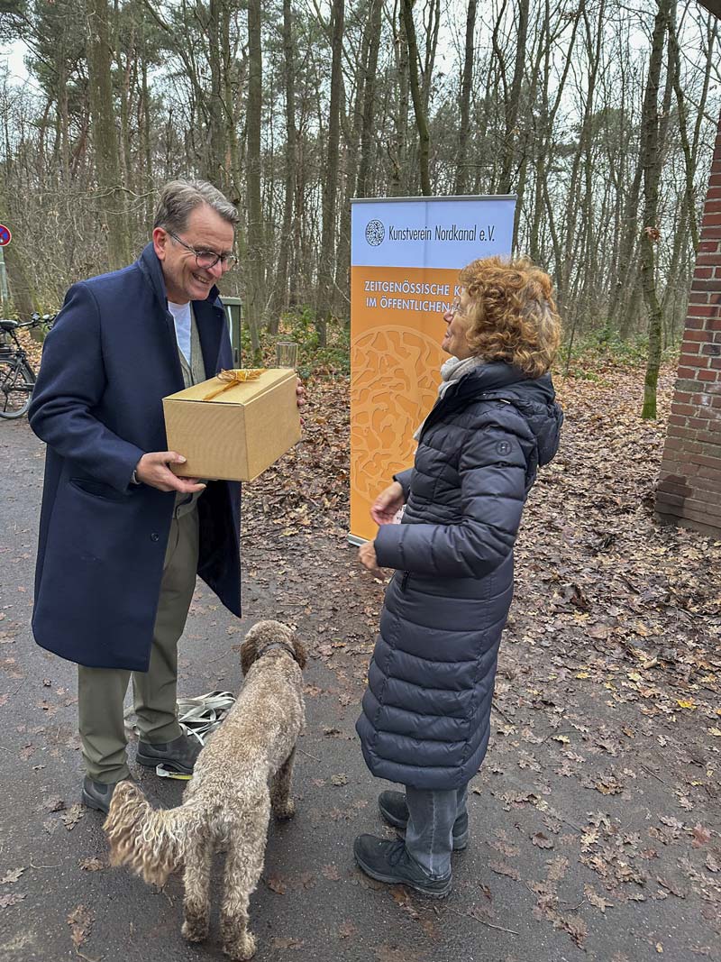 Für die Handwerker, die am Umbau des Trafohauses beteiligt waren, veranstaltete der Vorstand und Beirat des Kunstvereins einen Sektempfang. Das Mini-Museum Trafohaus steht kurz vor der Vollendung. Für Neugierige lohnt sich ein Blick ins Innere: es weihnachtet.