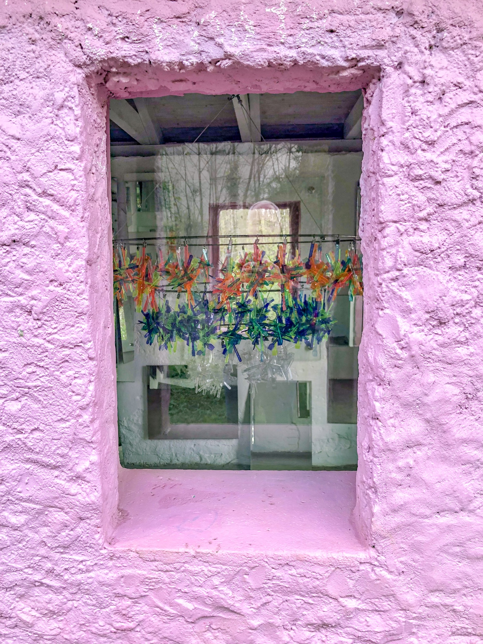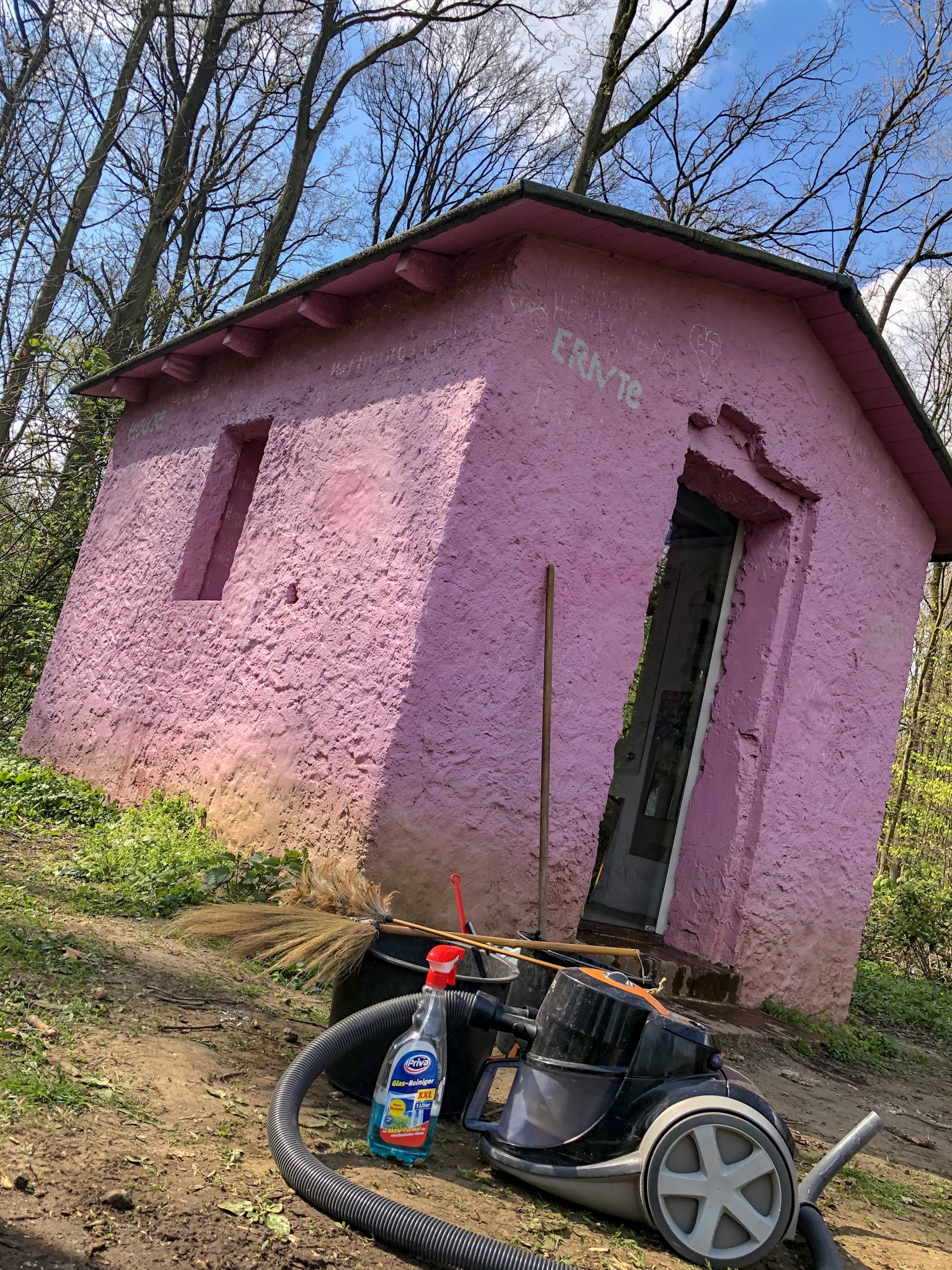Zwei Trimm-dich-Geräte in der Blickachse der „Türhüter“. Ein weiteres Fitnessgerät direkt neben der „Waldhütte“, keine vier Meter davon entfernt. Gibt es keinen anderen Standort für Sportgeräte als in direkter visueller Nachbarschaft der angestammten Kunstwerke? Ja, der Vorster Wald ist nicht groß, aber groß genug, um einen separaten Platz für die Sportgeräte zu finden.